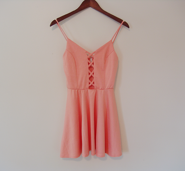 an adorable fit and flare dress featuring a criss cross corset detailing down the front. make it a perfect summer outfit with a pair of wedges and a flower crown!